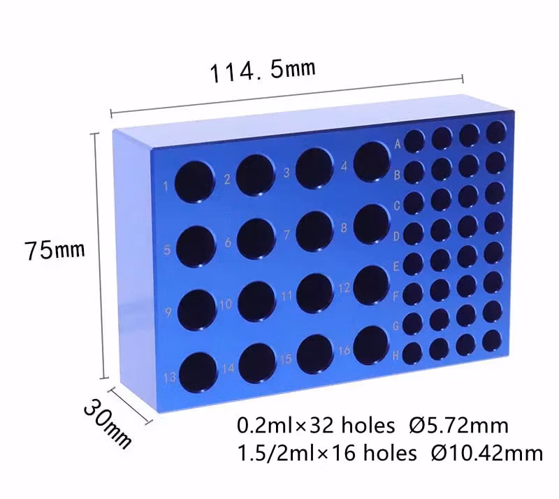 Debido a la diferente capacidad de los tubos de laboratorio, necesitamos diferentes Calentadores de bloque seco CNC bloque de calentamiento modular de aluminio para tubos de laboratorio para aumentar la velocidad y la capacidad de la prueba.
